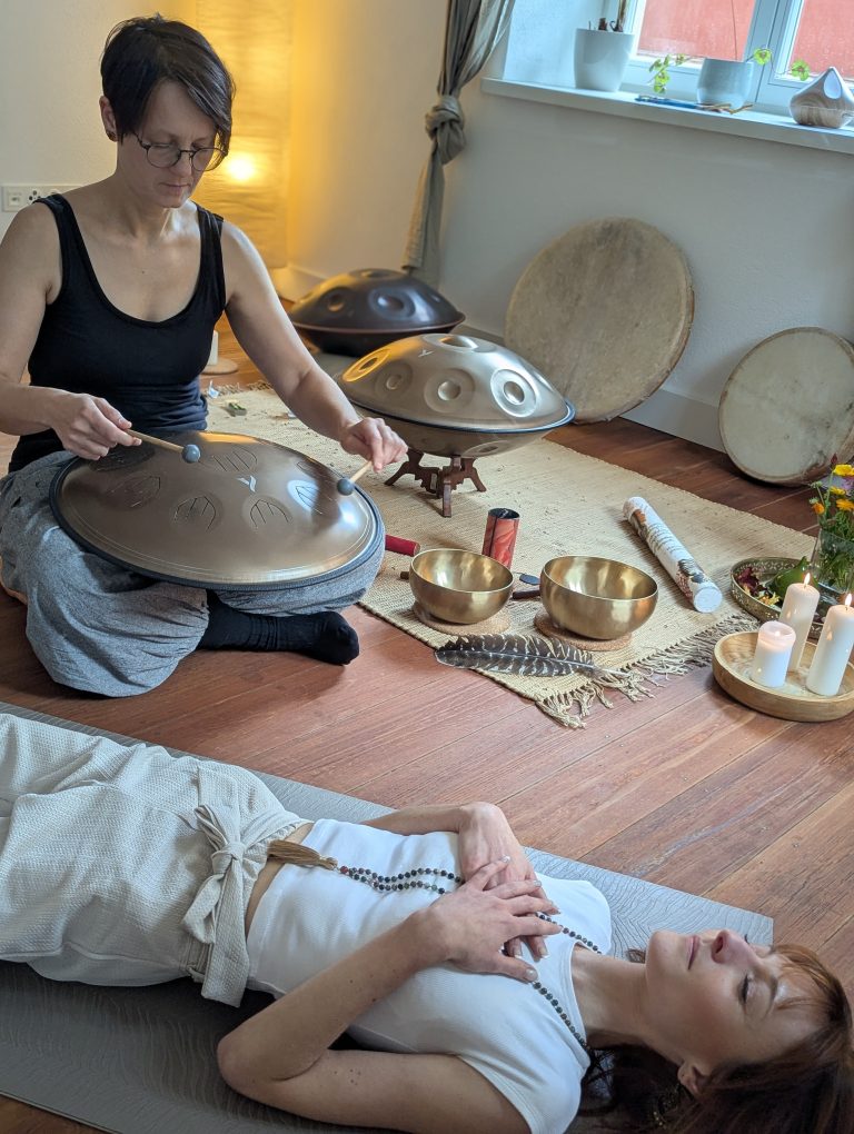 Sicherheit entsteht durch Wahlfreiheit – du kannst mitgehen oder einfach nur zuhören, jederzeit wieder auftauchen, dich bewegen, atmen, die Augen öffnen. Manchmal ist es nicht der laute Gong, der verändert – sondern der stille Raum zwischen den Tönen. Dort findet das Nervensystem oft seine eigene Sprache wieder: ein Zittern, ein Seufzen, ein leises Zurückfinden ins Jetzt.